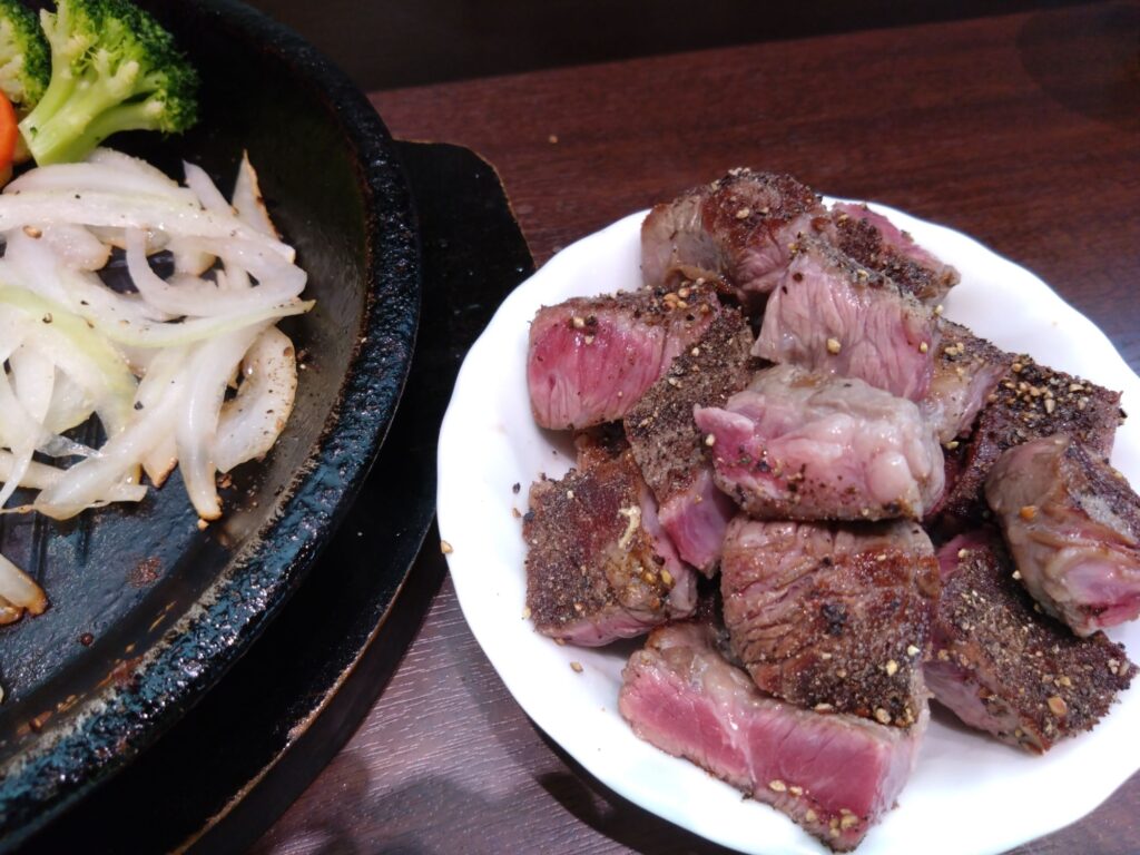 普通は、ステーキソースをかけて食べると思うんですが、私の食べ方だとそのまま食べるので味が薄くなっちゃうんですね