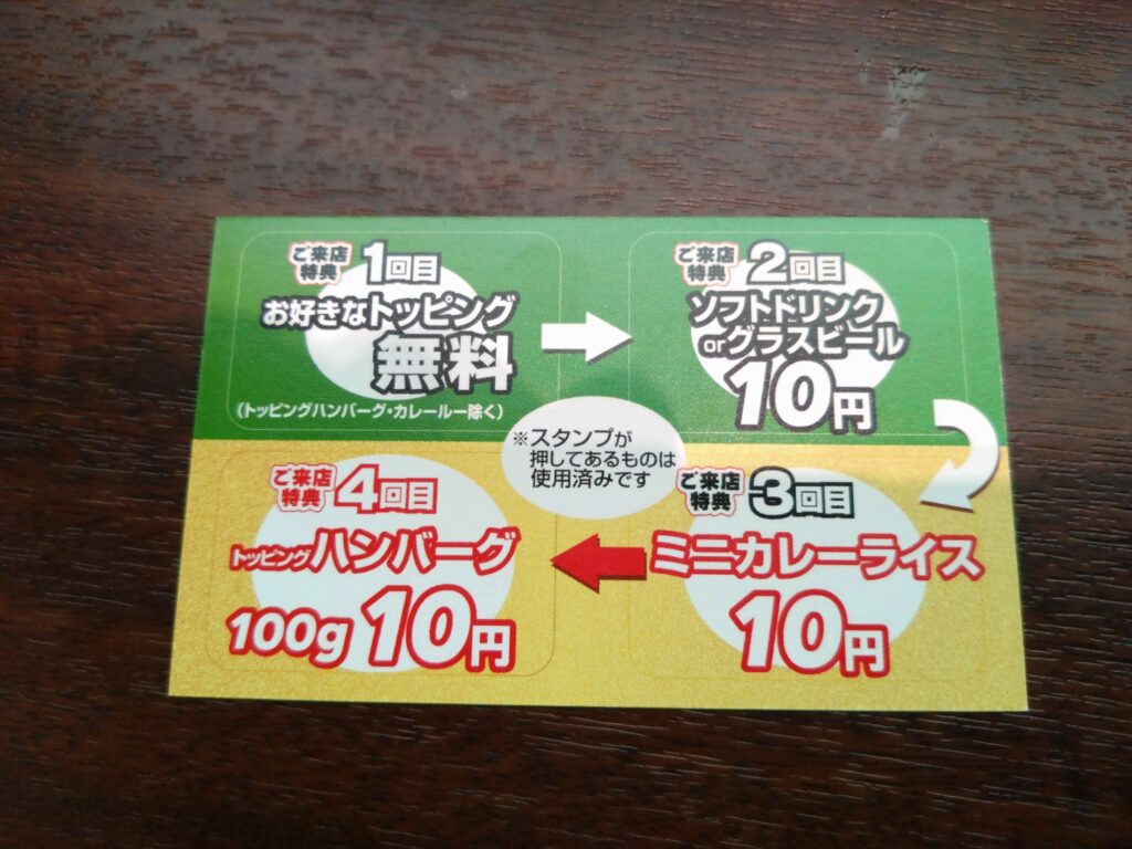 それと常連さん?には、サービスチケットが配られて、四回位でハンバーグ100㌘10円で食べられます