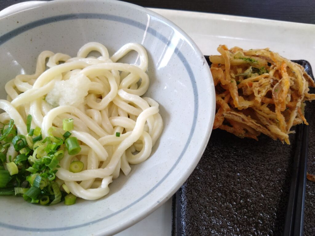 散々食べてるので、控えめ(笑)に醤油一玉528円と野菜かき揚げ154円をチョイスしました