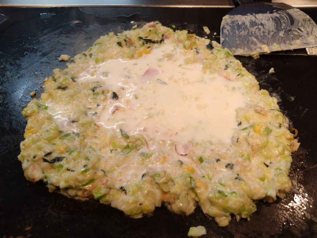 最初はお好み焼きではなく、もんじゃの牛乳もんじゃ1100円を頼みました