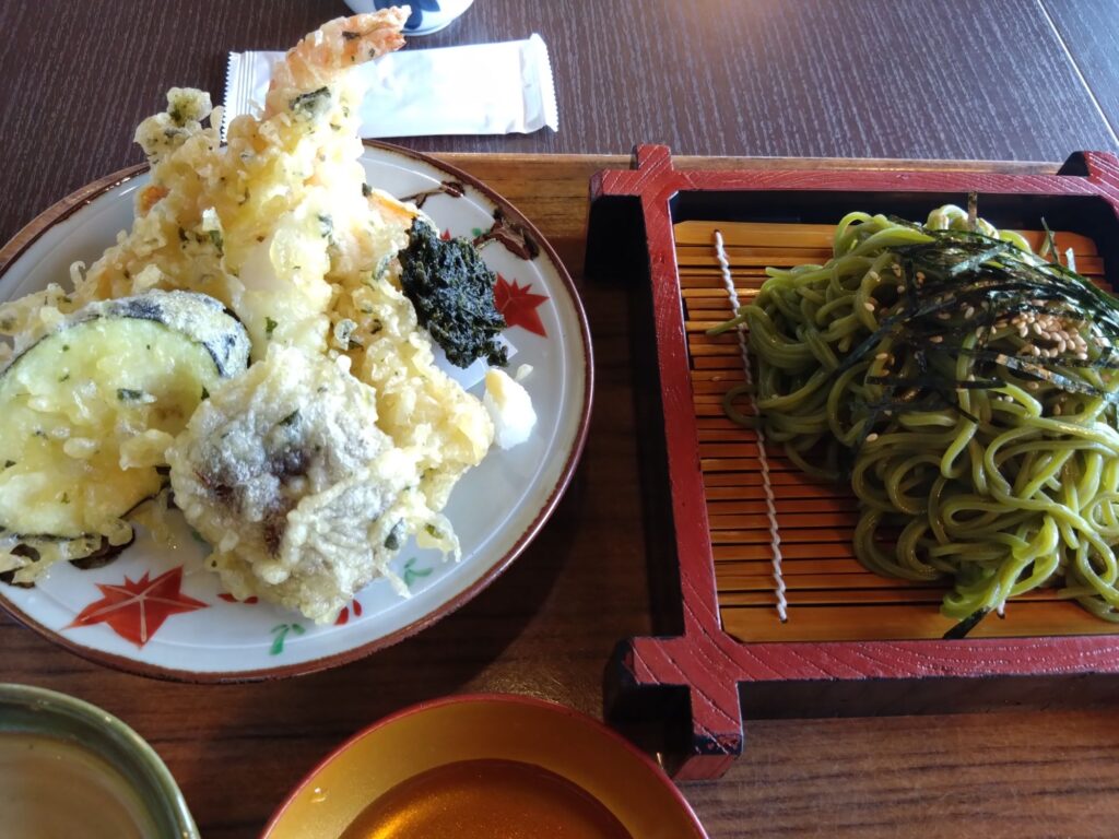 蕎麦は、玉露の里らしく茶そばでしたが、そんなにお茶感はないです