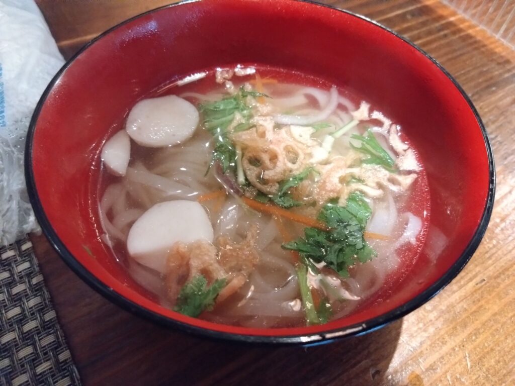 きのこは三種類が入っていて、きのこは少しぬめりがあり、いかにもと言う汁でした