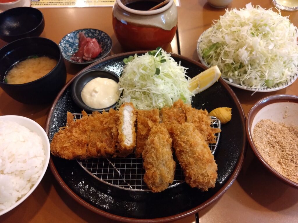 しかし、今日はカキフライに目がくらみ、ロース100㌘とカキフライ二個のセット1848円を頼んでしまいました